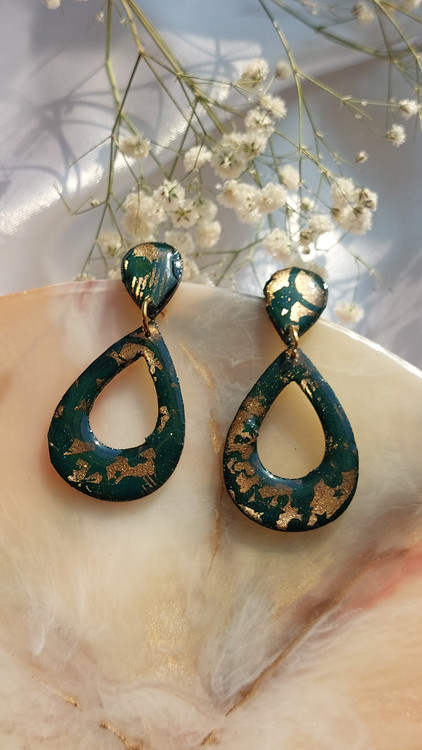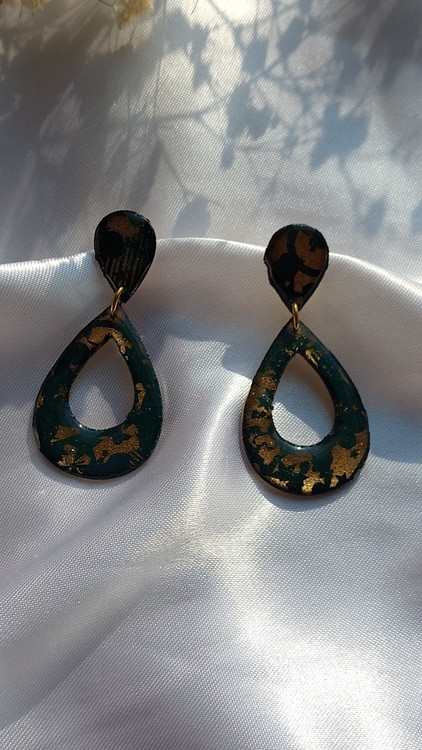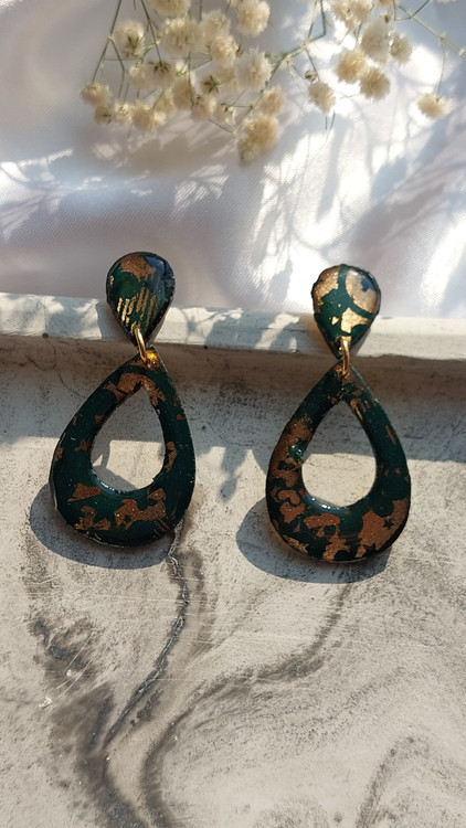 گوشواره رزینی کار شده با مولتی و رزین طرح اشک رنگ سبز و طلایی ساده و شیک و بسیار سبک مناسب برای کادو دادن خرید به صورت آنلاین و سایت