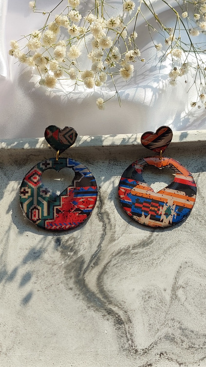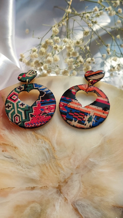 گوشواره رزینی کار شده با رزین و مولتی طرح دایره و قلب سنتی در طرحهای مختلف ساده و شیک و بسیار سبک مناسب برای کادو دادن خرید به صورت آنلاین و سایت