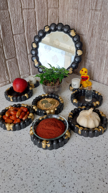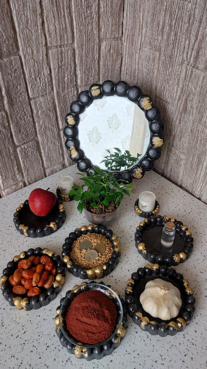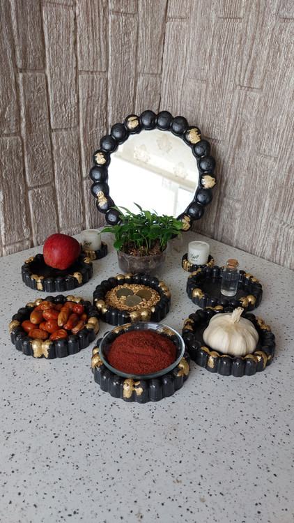 هفت‌سین سنگ مصنوعی رنگ مشکی و ورقه طلا
