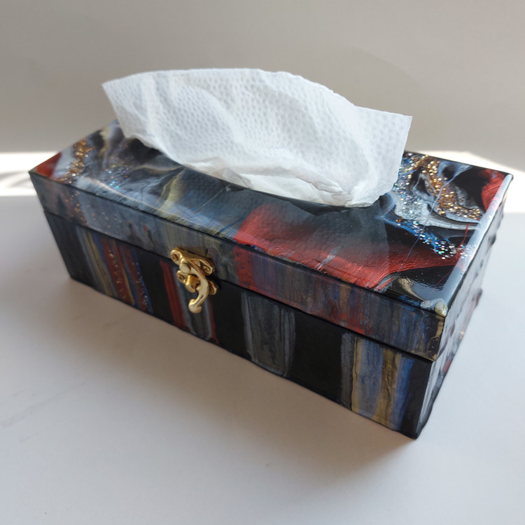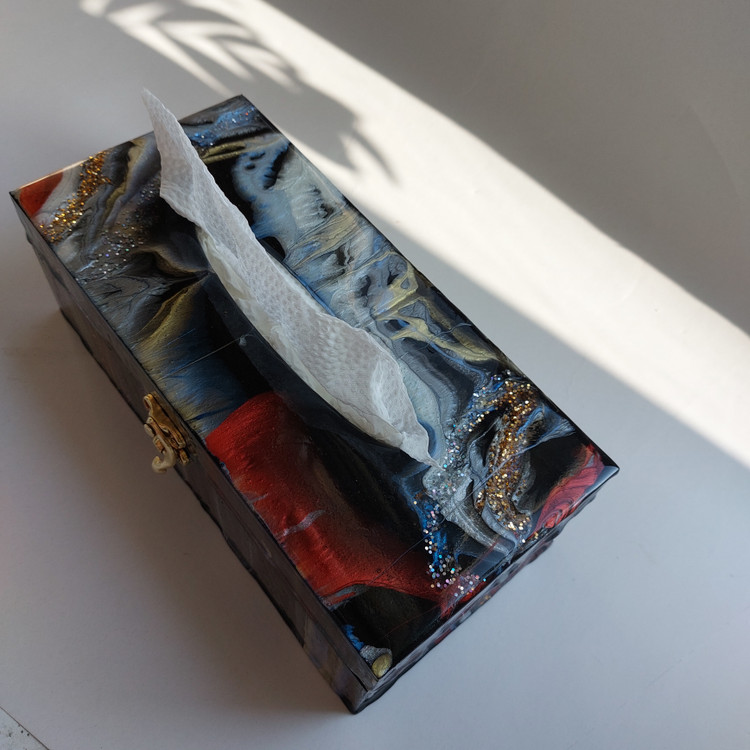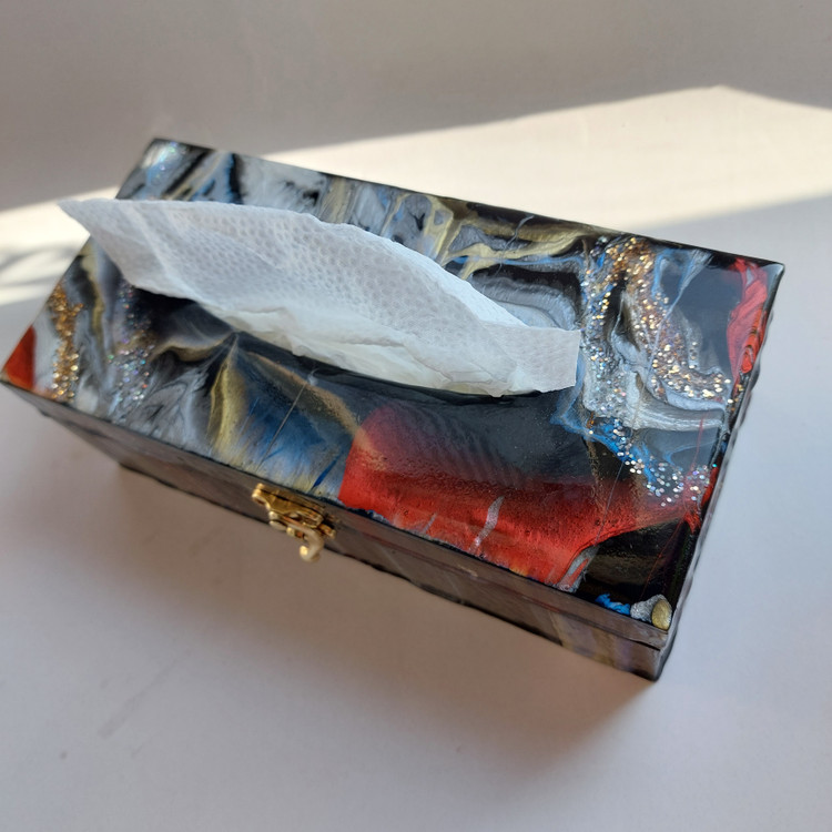 جا دستمال کاغذی رزینی کار شده با چوب و رزین سبک، نشکن، شفاف دارای قفل شیک و خاص خرید به صورت آنلاین و سایت